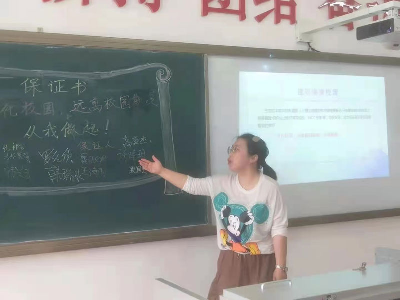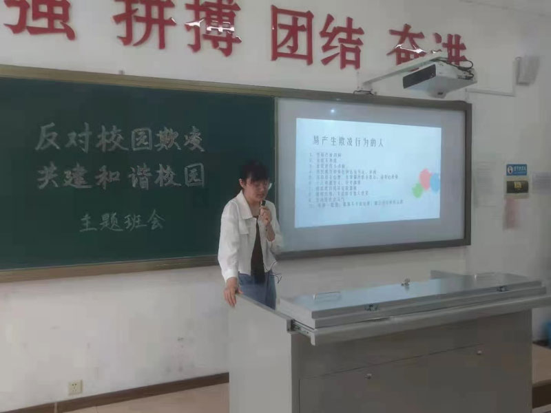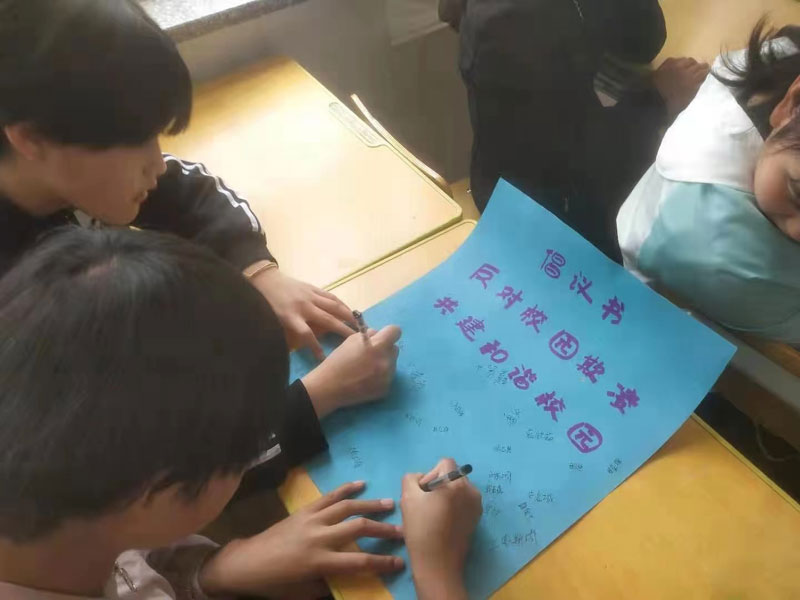 為深入貫徹落實國家、省、市關(guān)于在校園開展預(yù)防發(fā)生學(xué)生欺凌事件的相關(guān)文件精神,按照工作計劃于6月4日組織召開了“校園防欺凌”主題班會。市體育運動學(xué)校領(lǐng)導(dǎo)班子對此次主題班會高度重視,在學(xué)校工作例會上提出了4點要求:一是責成學(xué)生科要精心組織,突出主題;二是以多媒體教學(xué)設(shè)備為依托,充分利用網(wǎng)絡(luò)教學(xué)資源;三是要在全校范圍內(nèi)營造出“反校園欺凌”的濃厚氛圍;四是學(xué)校領(lǐng)導(dǎo)班子成員分頭下沉到班級,全程參加主題班會,會后要提出指導(dǎo)意見。 學(xué)校組織全體教師召開了班主任會議,分配具體任務(wù)。在全體班主任的精心籌備下,6月4日上午第四節(jié)課,召開“校園防欺凌”主題班會。在主題班會上,班主任通過講解在網(wǎng)絡(luò)上精心選取的視頻資料、新聞報導(dǎo)和法律條文等相關(guān)內(nèi)容讓學(xué)生了解了導(dǎo)致校園欺凌事件發(fā)生的不利因素、對受害學(xué)生精神和肉體的巨大傷害、惡劣的社會影響以及嚴厲的法律制裁,使全體學(xué)生深刻認識到了“校園欺凌”的危害,紛紛表示:“凈化校園、遠離校園欺凌,要從我做起?!敝黝}班會結(jié)束后,全體學(xué)生在遠離校園欺凌的“承諾書”和“倡議書”上鄭重地簽下了自己的名字。