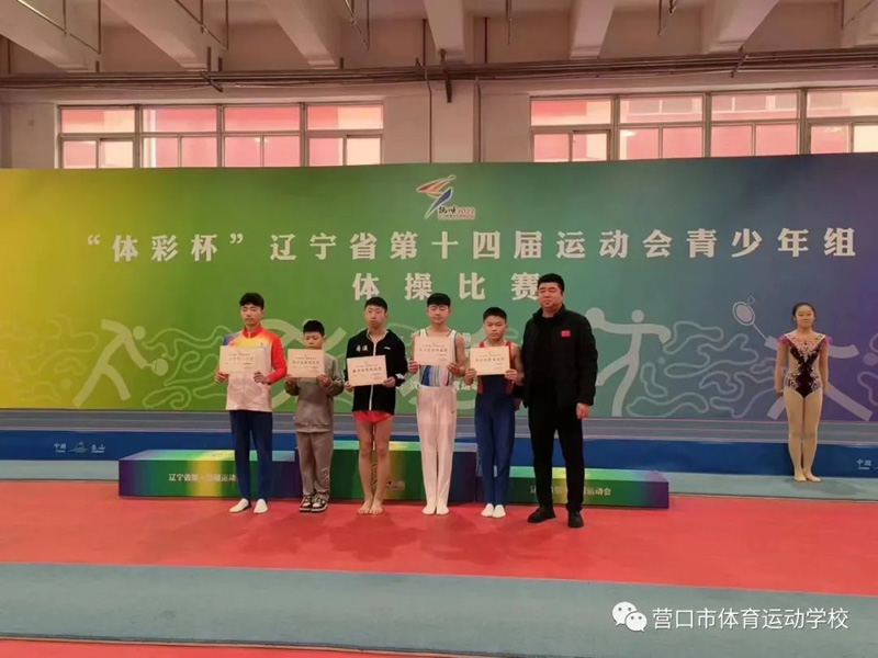 “體彩杯”遼寧省第十四屆運(yùn)動(dòng)會(huì)(青少年組)體操比賽開(kāi)幕式 本屆省運(yùn)會(huì)體操比賽按照年齡段分為甲、乙組。營(yíng)口市代表隊(duì)任佳昊獲男子甲組個(gè)人單杠第一名,吳雨函、田家盈分別獲男子乙組、女子乙組個(gè)人全能第二名。按照遼寧省第十四屆運(yùn)動(dòng)會(huì)青少年組比賽規(guī)程總則獎(jiǎng)牌計(jì)算方法,體操比賽男、女乙組個(gè)人全能為重點(diǎn)小項(xiàng),前三名分別按3、2、1枚金牌獎(jiǎng)勵(lì),我校體操隊(duì)為營(yíng)口市代表團(tuán)帶入金牌5枚、銀牌6枚、銅牌3枚,并獲得本次比賽“體育道德風(fēng)尚獎(jiǎng)”。