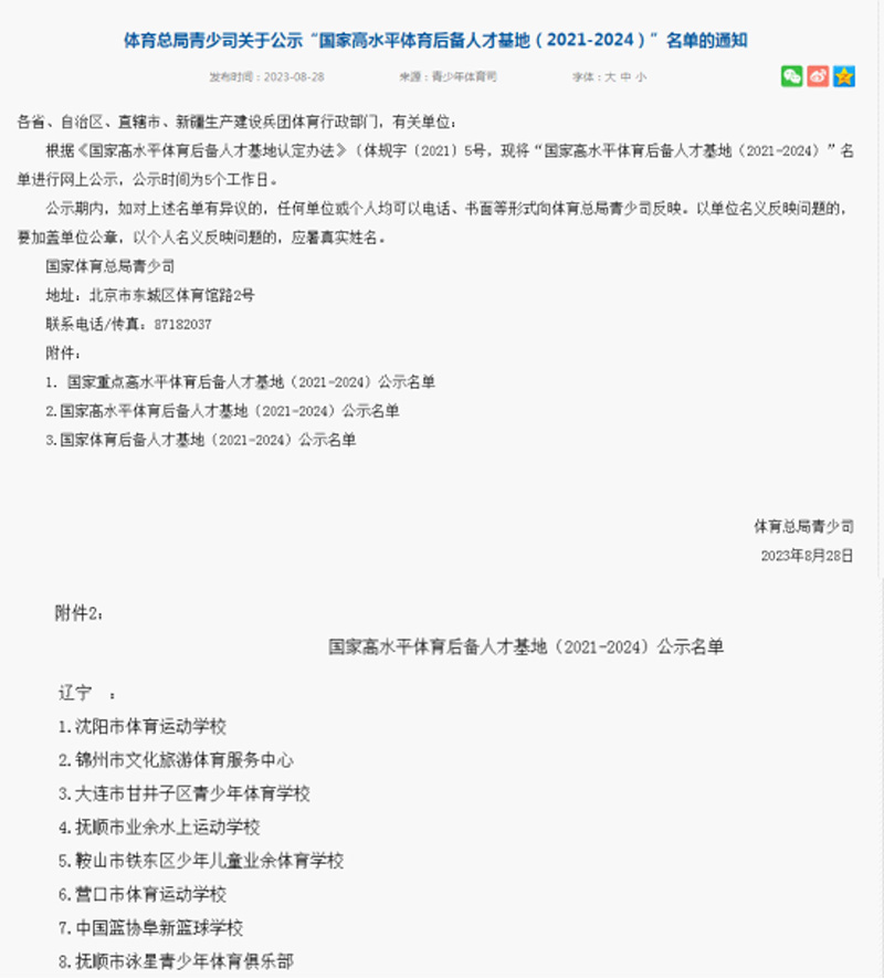 喜報(bào)!營(yíng)口市體育運(yùn)動(dòng)學(xué)校第五次創(chuàng)建國(guó)家高水平體育后備人才基地成功8月28日,國(guó)家體育總局青少體育司官網(wǎng)發(fā)布《關(guān)于公示“國(guó)家高水平體育后備人才基地(2021-2024)”名單的通知》,營(yíng)口市體育運(yùn)動(dòng)學(xué)校榮登上榜。