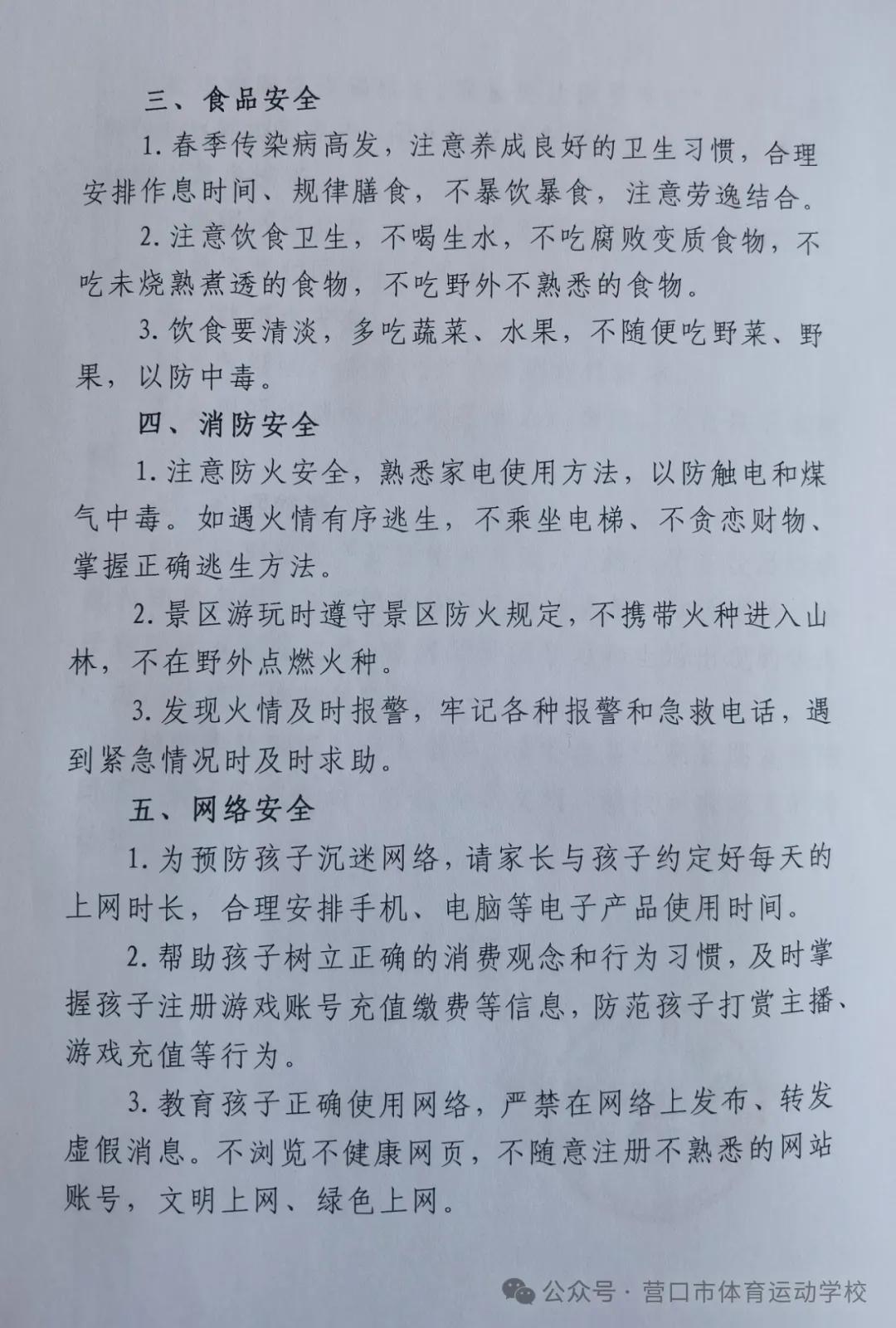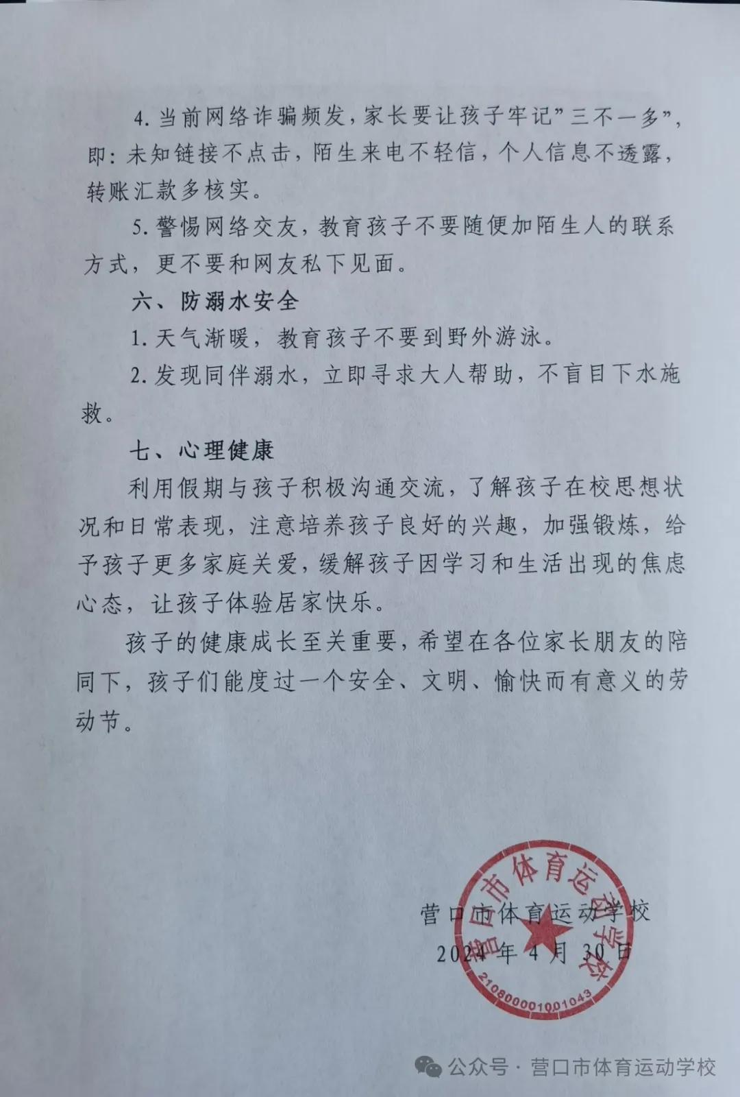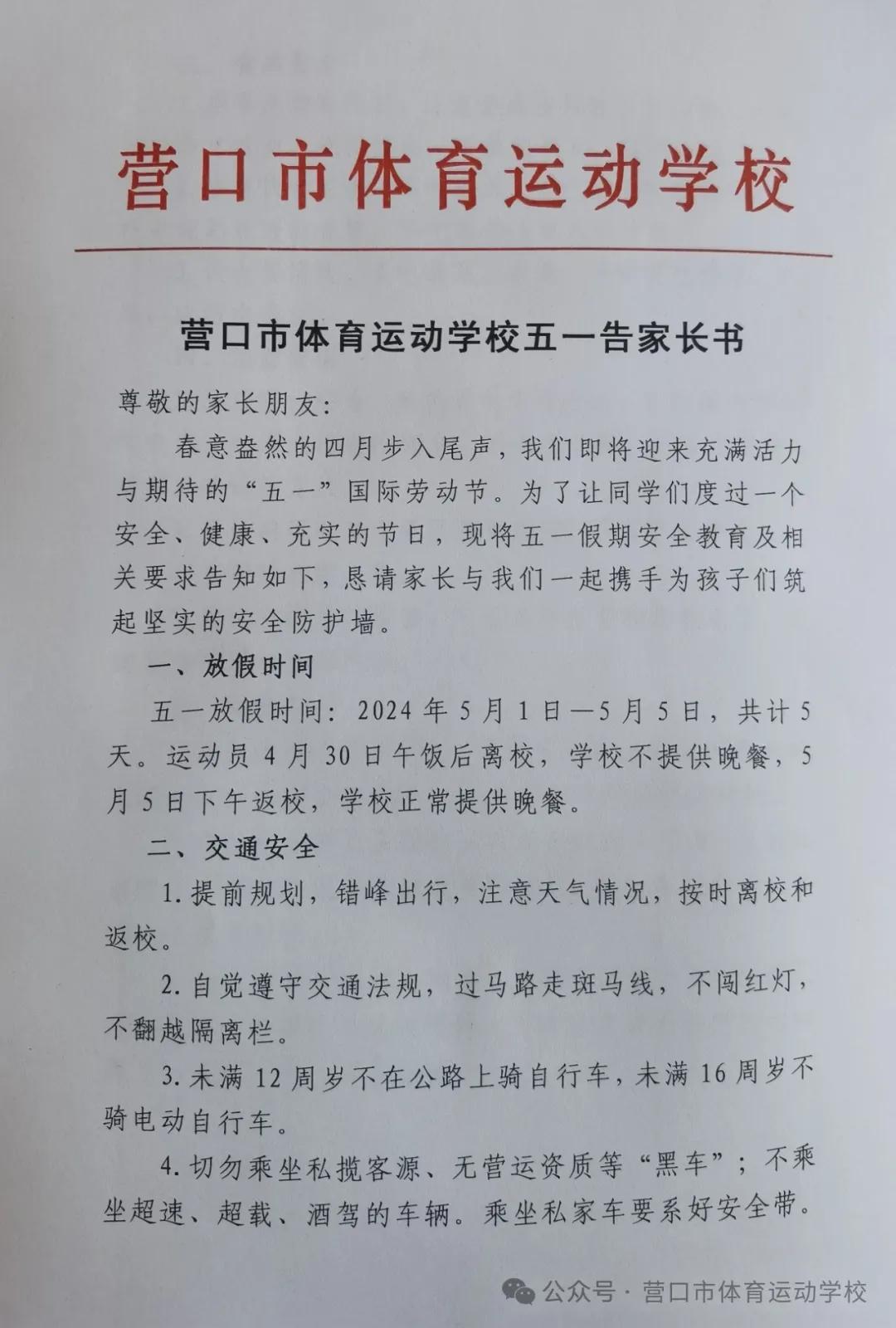 營(yíng)口市體育運(yùn)動(dòng)學(xué)校五一告家長(zhǎng)書(shū)